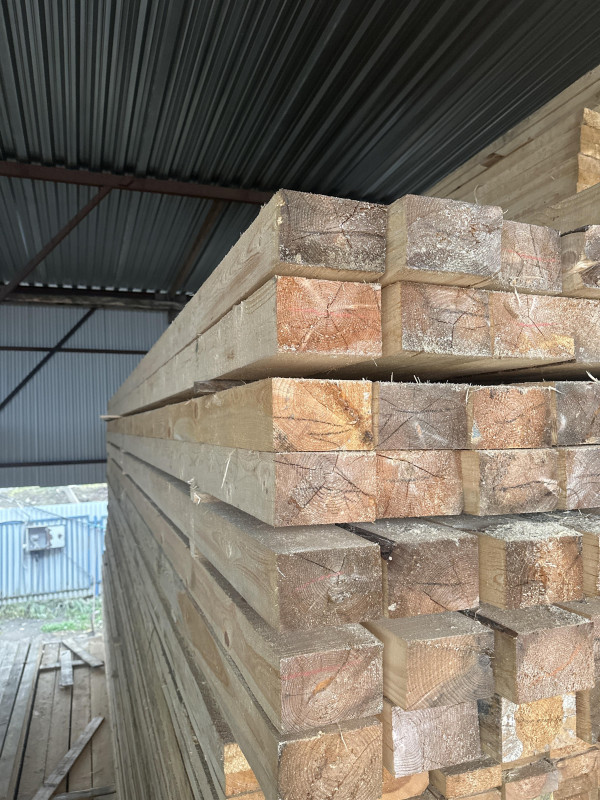 При хранении брус следует размещать под навесом на ровной площадке с прокладками между рядами для обеспечения вентиляции и предотвращения гниения.