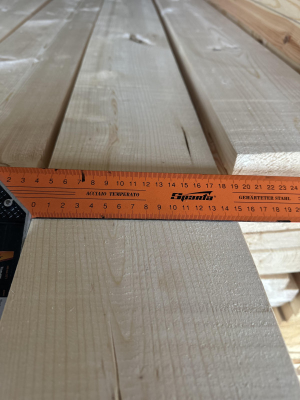 - Геометрия: доска строгана с четырёх сторон, что обеспечивает ровную поверхность и точное соблюдение габаритов. Это позволяет использовать материал без предварительной шлифовки.